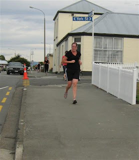 The run started at 9.30am on the outskirts of Timaru...the temperature was already soaring by this stage (high of 27 was forecast). I relished the water tables...though not much of this water went down my throat - most of it was thrown over my head to cool me down.